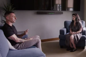 Marine Corps veteran Ryan Roberts participates in a mock therapy session in a psilocybin dosing [...]